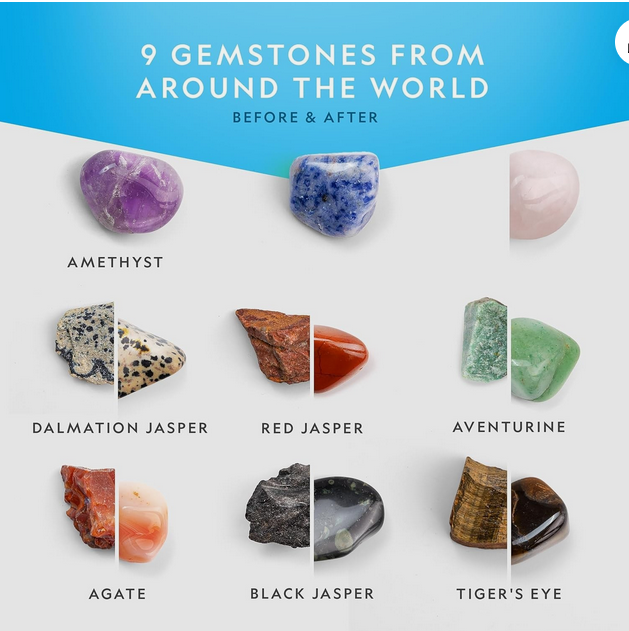 Turn rough rocks into amazing gemstones with the Hobby Rock Tumbling Kit from National Geographic! This kit has all the features and accessories you’ll need to master rock tumbling, start an extraordinary rock collection, and create beautiful jewelry. Contents and Features: Power-saving automatic shutoff timer; Reliable, long-lasting motor; Leak-proof tumbler barrel; Noise-reduced operation (75% quieter than plastic barrels); Plenty of stones (1/2 lb) and four levels of grit; Jewelry fastenings so you can create your own unique jewelry; GemFoam, the most innovative way to add dazzling shine to your polished stones! This high-quality tumbler allows you to set your tumbling time. When the time expires, your tumbler will automatically shut-off, allowing you to choose the perfect amount of tumble time for each grit stage. Plus, our tumbling barrel dampens sound better than most tumblers out there. The rough rocks provided (1/2 lb) contain nine different gemstones from around the world, and our tumbling grit is labeled by tumbling stage to make the process even easier! Choose your favorite gems and turn them into jewelry with the included necklace, key chain, ring, and two clip-on earring fastenings inside. And don’t forget about GemFoam, our exclusive new way to add dazzling shine to your polished rocks! Use GemFoam just like tumbling grit, simply add it to the barrel with your stones and water, then three days later marvel at the shine! GemFoam is reusable too, allowing you to create a truly impressive gemstone collection! National Geographic Toys makes the highest quality hands-on science toys, and all products are backed by exceptional service. About the National Geographic Society: With a mission to inspire people to care about the planet, the National Geographic Society is one of the world’s largest nonprofit scientific and educational organizations.